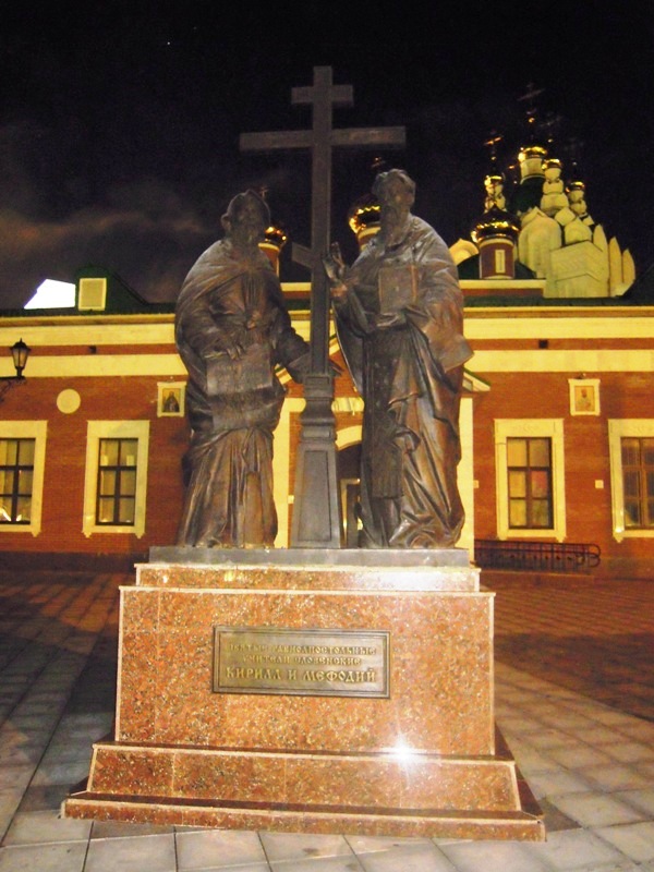 Памятник святым равноапостольным Кириллу и Мефодию установлен 1 ноября 2014 года на Царьградской площади перед зданием музея истории православия, торжественно открыт 2 ноября 2014 года в преддверии празднования Дня Республики Марий Эл. Памятник представляет собой двухфигурную композицию: на переднем плане — создатели старославянской азбуки, равноапостольные святые Кирилл и Мефодий. У Кирилла в руках свиток с буквами первой кириллической азбуки, у Мефодия — Евангелие. Между святыми возвышается православный крест.