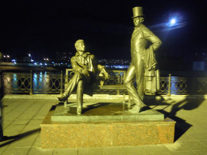 Памятник А. С. Пушкину и Онегину (в месте пересечения с ул. Пушкина). Открыт 31 августа 2011 года в преддверии Дня знаний.