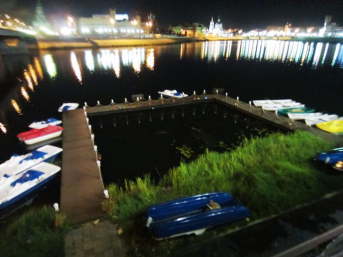 У Театрального моста, на реке, расположен пункт проката лодок.