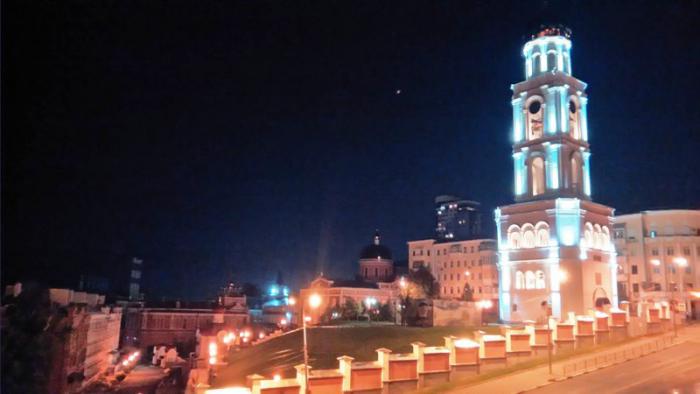 Вид на Георгиевскую церковь (2001 г.) с Площади Славы.
