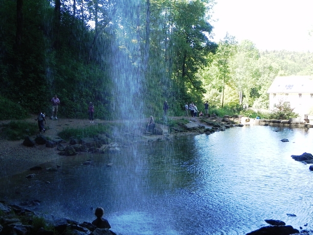Но в этом была какая-то своя прелесть, поскольку, зайдя вдоль отвесной скалы за водопад, складывалось ощущение, словно ты находишься за прозрачным водяным занавесом.