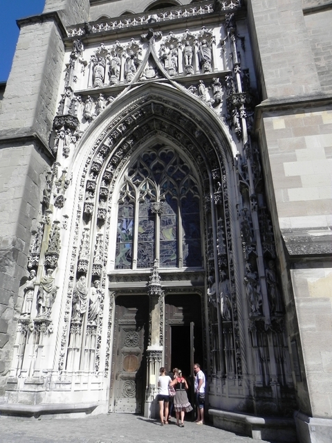 Стоя у портала Монфалькона, можно долго изучать фигуры, украшающие своды. Но для этого нужно хотя бы чуточку разбираться в религии и местной истории.