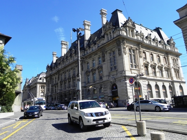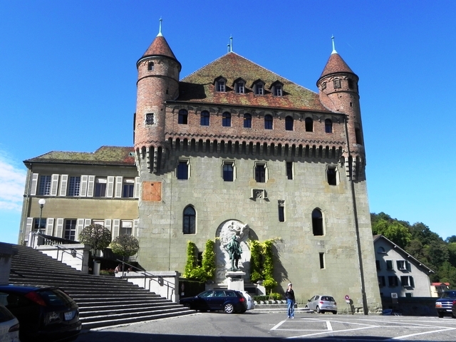 Затрудняюсь сказать, является ли Замковая площадь высшей точкой Лозанны, но, достигнув её, мы пошли на спуск. Правда, в ином направлении. Доминантой же этой площади, а, возможно, и всего города, является замок Сент-Мари. Возведённый в начале 15-го века, большим разнообразием функций он не обладал – здесь успели позаседать масоны да местные начальники. Последние оккупируют его и по сей день.