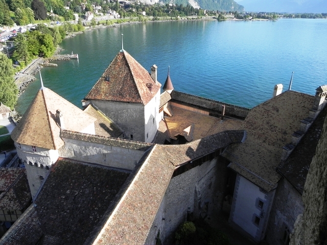 Замок Шийон был заложен на скале, несколько возвышающейся над поверхностью озера, в 9-м веке. Став в 12-м веке резиденцией герцогов Савойских, замок постепенно расширялся и перестраивался, обретя свой нынешний облик в 15-м веке.