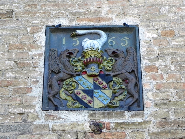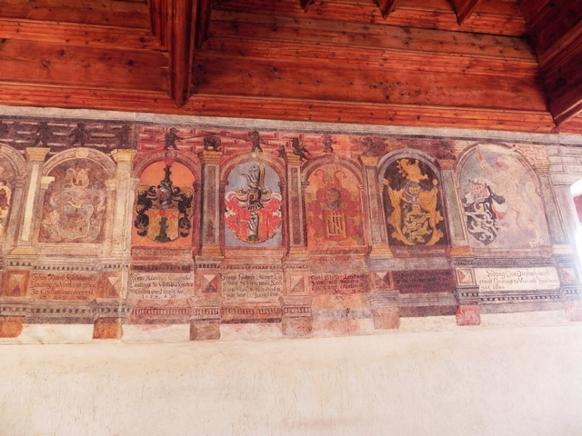 Да, а почему, собственно, гербовый? Да потому, что фриз украшен гербами различных административных работников т.н. бернского периода в истории замка, проживавших здесь в 16-18-м веках. Думаю, что и наши современные чиновники, дай им ещё немножко воли, уже готовы в качестве своих резиденций использовать отреставрированные замки. Слава богу, что у них гербов нет. Пока нет.