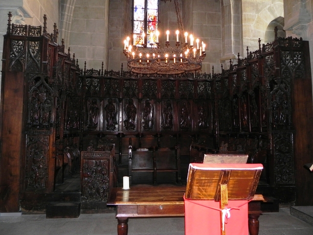 Ещё один шедевр собора – это деревянные скамьи 16-го века, украшенные готической резьбой.