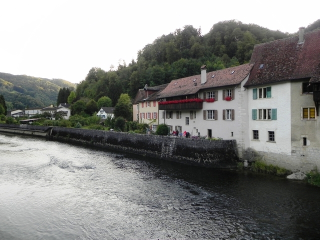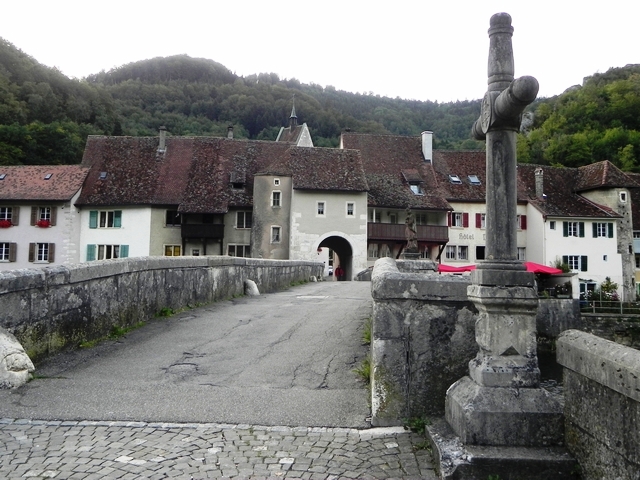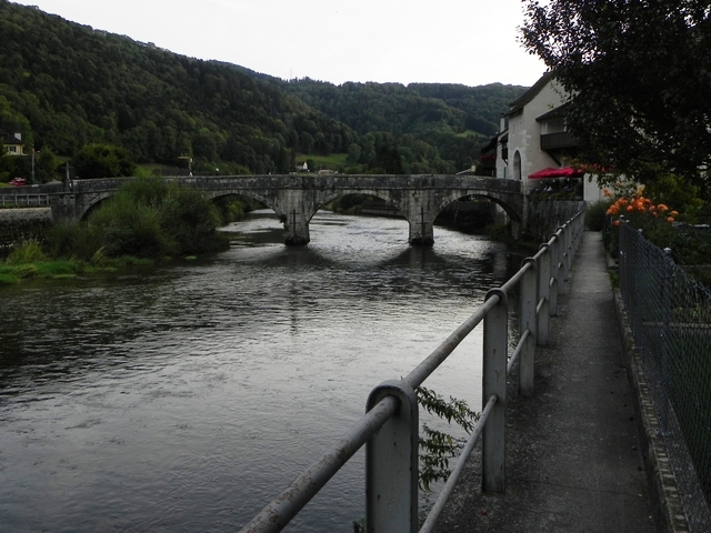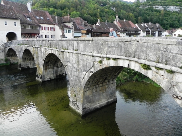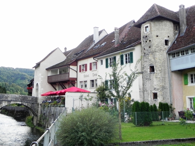 В «городок мечты» (это тоже отголосок из 1998 года) Сент-Урсан (Saint Ursanne) прибыли в семь вечера. Сначала заселились в . Наверное, за адекватные деньги можно было и снять комнату в гостиничном блоке кемпинга, но об этом я подумал после установки палатки. Поэтому менять ничего не стали. Месторасположение кемпинга оказалось идиллическим: на краю города, но до центра 800 метров; ещё ближе река, естественно, Ду; почти над головой находится шикарнейший виадук, по которому изредка проходят «игрушечные» составы.