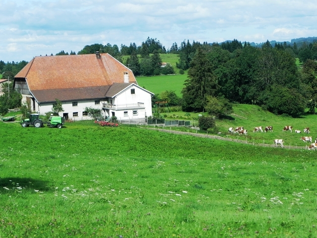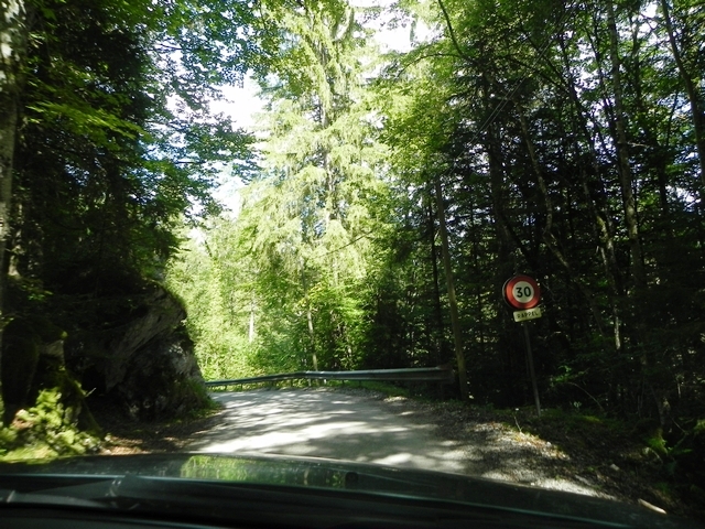 «Козьими тропами» доехали до границы со Швейцарией. Там стоит небольшое административное здание, но персонала нет. Установлен и знак, запрещающий движение всем, кроме местных. Искать другие пути нет желания, да и времени жалко, поэтому осуществляем нелегальный переход границы. Дальше вновь «козьими тропами», проложенными между полей фермеров. То, что дороги крайне узкие – это не страшно. Страшно будет, если дорога будет перегорожена шлагбаумом или воротами, кои встречаются в конце каждой делянки. Нам повезло. Напряжение спало, когда мы, покинув поля, въехали в лес.