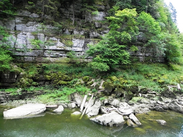 Некоторые скалы имеют причудливую форму – будто на берегу кормой к реке ступенчато выстроились в ряд огромные океанские танкеры. Ну, это мои ассоциации. На самом деле, эта скала называется «Столом Геркулеса». Она очень популярна в среде ныряльщиков. Кстати, «отцом» дайвинга считают некоего отца Симона, который то ли прыгнул, то ли упал с этой скалы около ста лет тому назад.