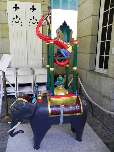 На заднем дворе и в открытых павильонах обнаружили модели отдельных часовых механизмов и сложные механические фигуры с подробными иллюстрациями принципов их работы.