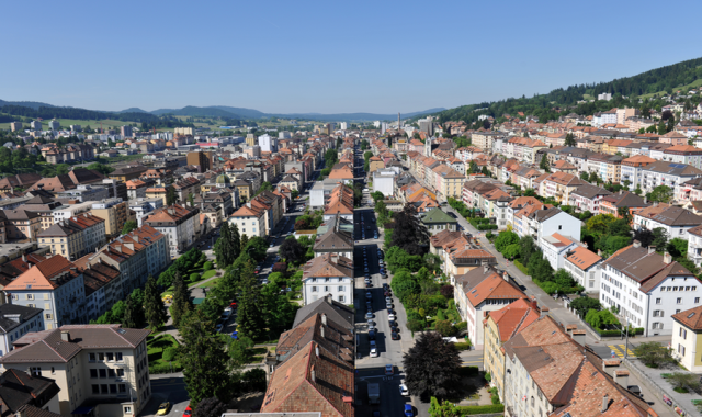 Отличительная особенность Ла Шо-де-Фон – это строгая геометрия зелёных бульваров, вдоль которых в линию выстроились дома с фасадами в стиле модерн. Такая планировка возникла после пожара 1794 года, уничтожившего практически весь город. Этот факт не ускользнул от внимания ЮНЕСКО, которая включила город в список объектов Всемирного наследия. К сожалению, и здесь не обходится без вторжения инородных тел в виде современных многоэтажных домов-башен, как, например, «Tour Espacite».