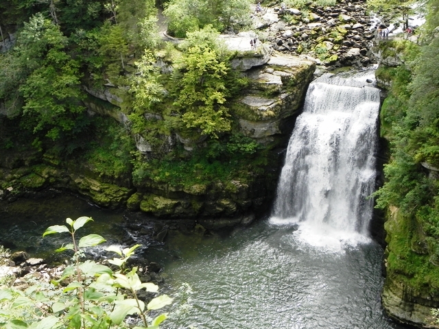 Над уступом водопада, с которого вода срывается вниз, есть два бельведера. Один французский, второй – швейцарский.