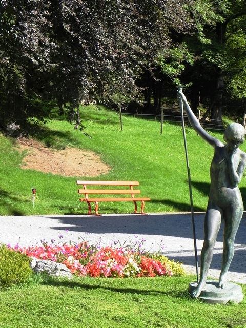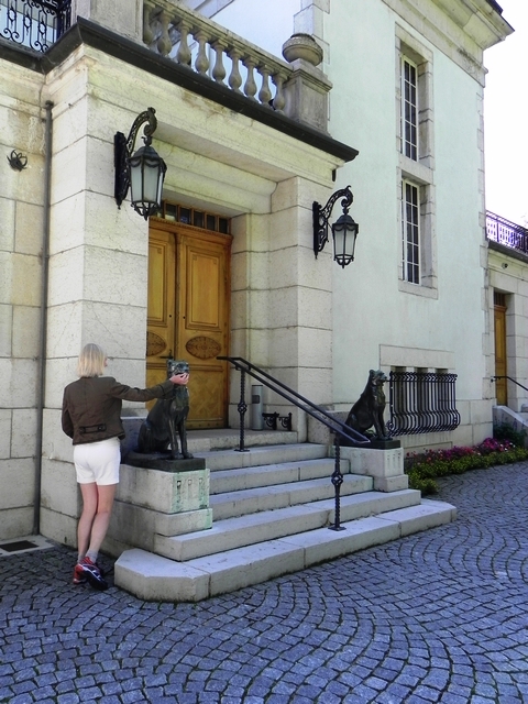 Сейчас в этом здании находится Музей часов. Внутрь не пошли, потому, что не знали, насколько интересна местная экспозиция — подобных музеев в Швейцарии немало. Побродили вдоль изумрудных лужаек, оживлённых скульптурами павлинов и обнажённых девушек.