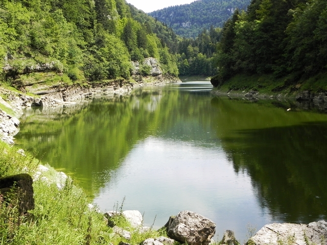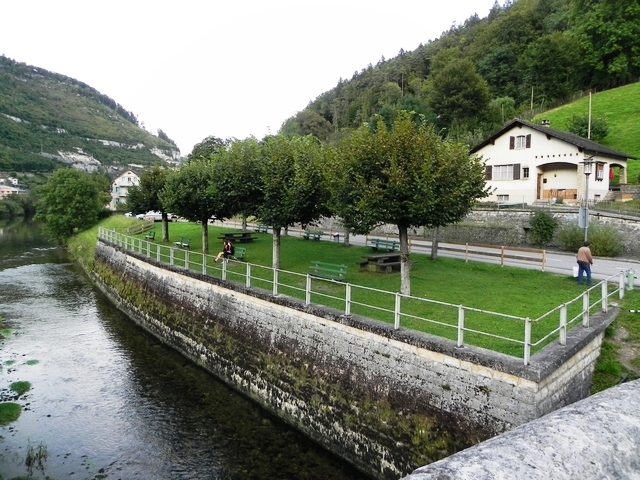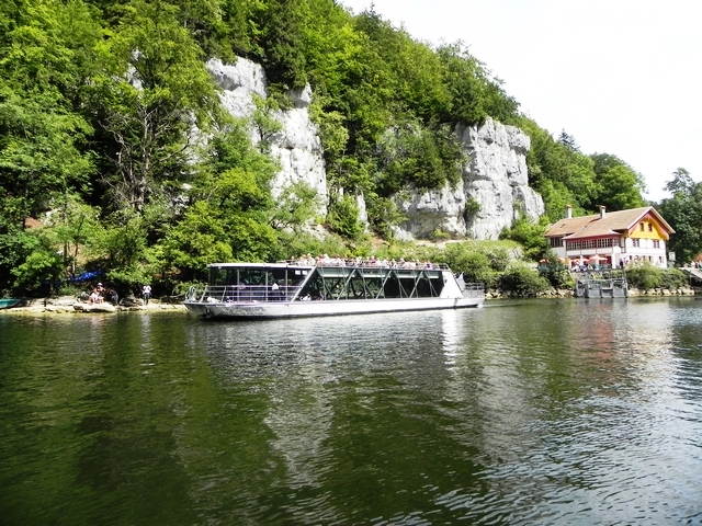 Выехав из Ле Локля, уже через десяток минут мы оказались во Франции. Вблизи границы и первая остановка – городок Вилле-ле-Лак (Villers-le-Lac). Сегодня у нас в планах длительное нахождение на природе – реки, ущелья, горы и леса. Вилле-ле-Лак – это стартовая точка . Ду — одна из основных рек в регионе Юра. Она известна бесконечным разнообразием и красотой окружающих её пейзажей. Прибыли мы удачно – до отправления очередного катера оставалось менее получаса.