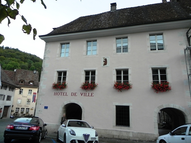 Разыскали мы и ратушу, что было несложно. Но она нас ничем не поразила. Разве что медведем, который здесь уже взбирается на жезл.