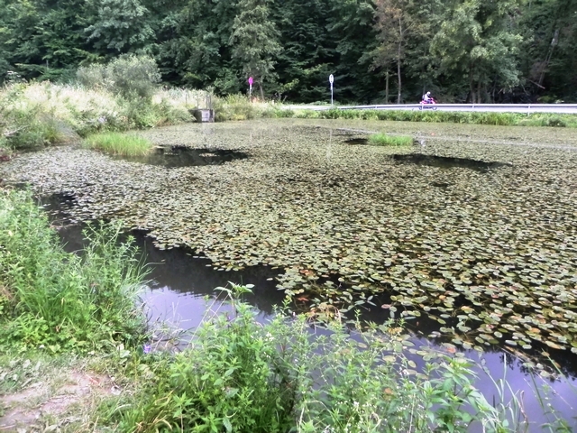 Возвращались мы нижней тропой, проложенной у подножия замка. Здесь можно увидеть то, что осталось от когда-то великолепных прудов. На сегодняшний день они больше похожи на болото – царство многочисленных земноводных.