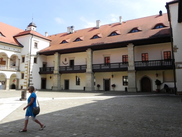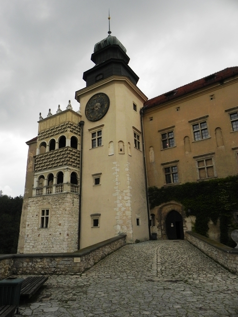 Считается, что замок Пескова Скала в своё время был перестроен в подражание королевской резиденции в Вавеле. Убедиться в этом нам не удалось, поскольку вход в аркадный двор был закрыт. Но вид часовой башни и элегантной лоджии подчёркивают отличный вкус архитектора.
