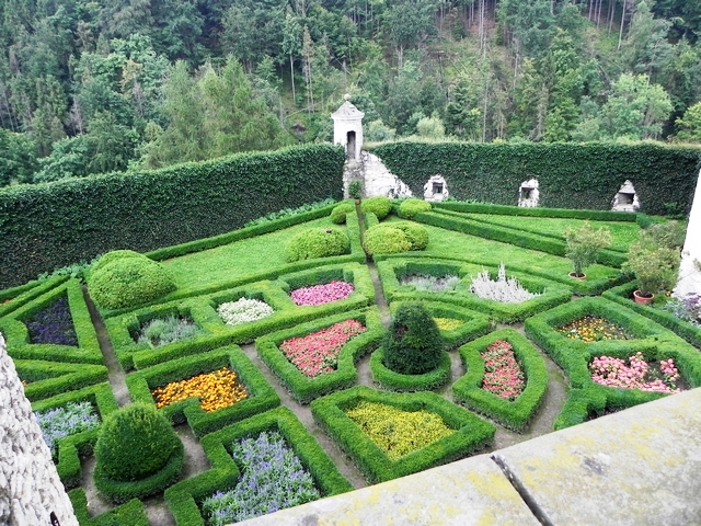 Со стен бастиона открываются великолепные виды на разбитый на нижнем уровне итальянский сад и простирающуюся между скал долину Прандника.