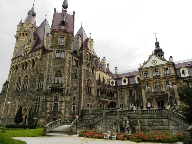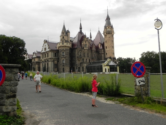 Преодолев полосу мощного ливня и свернув с автострады, в полседьмого мы оказались в селении Мошна (Moszna). Здесь находится малоизвестный «сказочный» дворцово-парковый комплекс — бывшая резиденция немецкой семьи Теле-Винклеров.