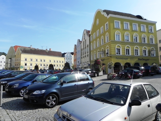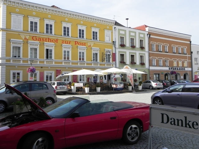 В планах на остаток дня – «пропахать» долину Инна в приграничье и проехать вдоль Дуная в направлении Линца. Первая остановка в городке Браунау-на-Инне (Braunau am Inn). Нет, сначала заправка, а затем Браунау. Вошло 84 литра – почти полный бак. Я остался доволен собой и тем фактом, что на люксембургском бензине удалось дотянуть до Австрии.
