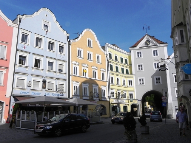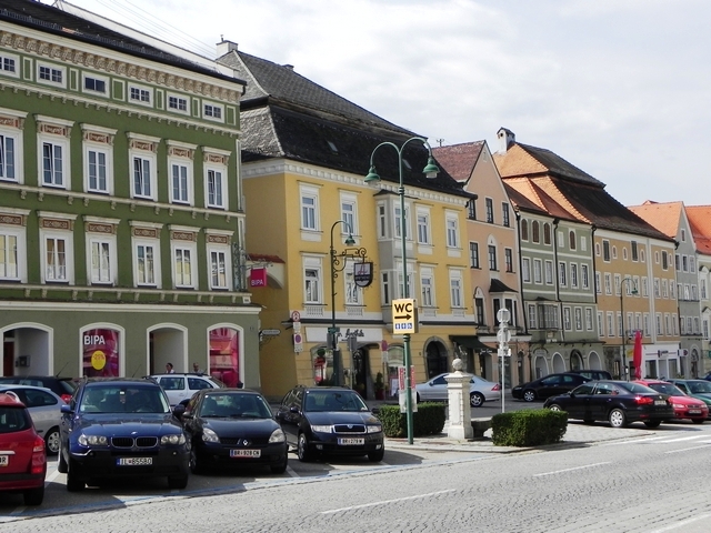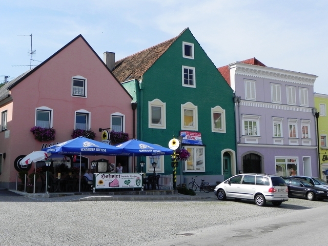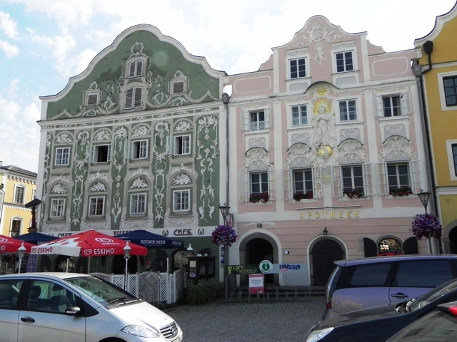 С горем пополам удалось-таки приткнуться. Первые же шаги по городу дают массу поводов для всплеска эмоций. Мне как скупому на чувствия человеку, достаточно сложно передать тот восторг, который охватил нас при виде местного великолепия. Видимо, вполне заслуженно Шердинг называют самым красивым барочным городом Австрии. А его жемчужина – так называемая «Серебряная линия» — непрерывный ряд особняков богатых купцов, фронтоны которых окрашены в пастельные тона.