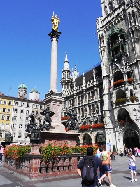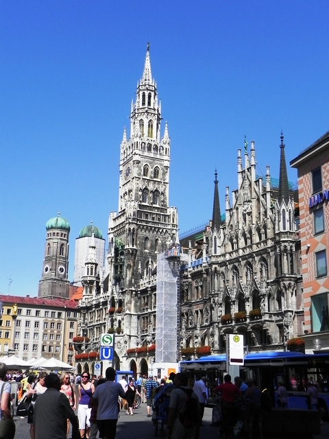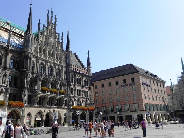 Самое культовое место Мюнхена – это, безусловно, Мариенплатц с её великолепной Новой ратушей. Поначалу хочется добавить ещё несколько ярких эпитетов. Но, с учётом основательной закопченности фасада, имеет смысл приберечь эти характеристики на будущее – к тому моменту, когда здание почистят, как это уже делают, например, с Реймским собором.