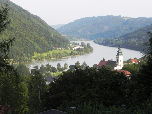 Вид со смотровой площадки открывался отменный: Дунай, зажатый как в тиски лесистыми холмами и прижавшаяся к воде беззащитная идиллическая деревушка Энгельхартсцелль (Engelhartszell).