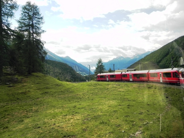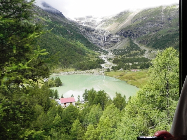 Пейзажи за окном меняются как в калейдоскопе – на смену альпийским лугам приходит озеро Поскьяво, меняющее, в зависимости от ракурса, цвет с бирюзового на зелёный.