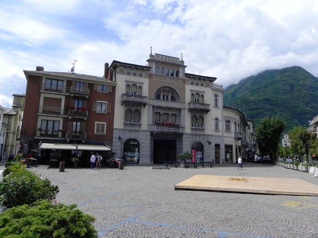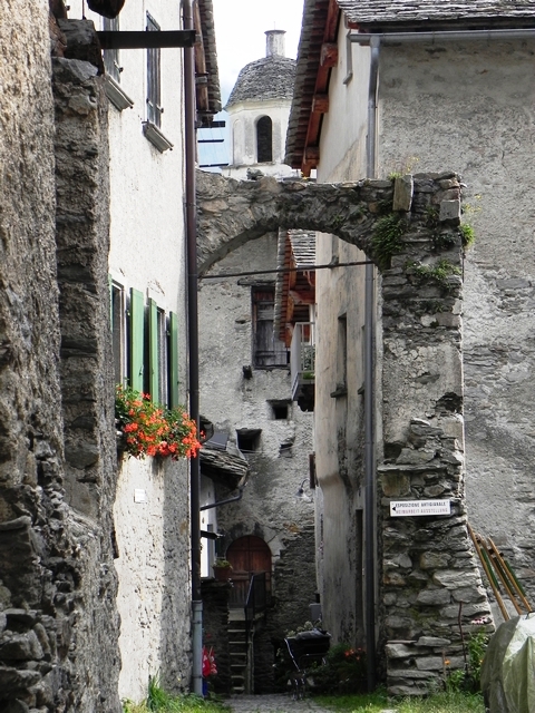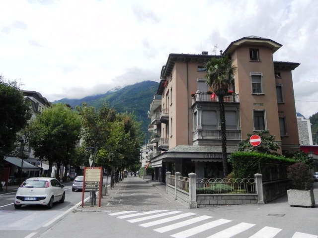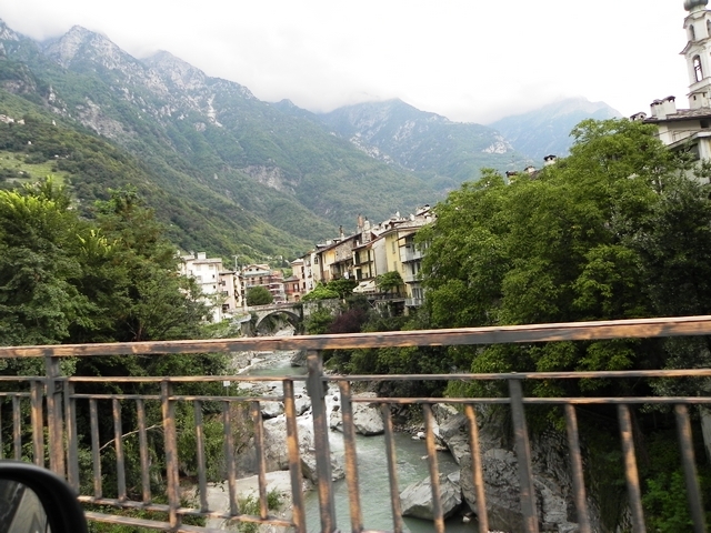 Впрочем, в этом нет необходимости. Зачем безоглядно «лететь», если есть возможность беспрестанно вертеть головой, в надежде увидеть что-нибудь волнующее. В Кьявенне (Chiavenna), на мосту через Маиру, промелькнул какой-то потрясающий вид. Пришлось вернуться, чтобы запечатлеть, как нависают дома над руслом стремительной реки.