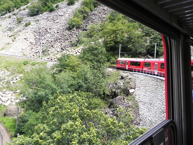 После этого начинаются головокружительные серпантины, достигающие уклона в 7%. Именно благодаря этому участку линия Бернина считается одной из самых крутых дорог в мире, не использующих дополнительный зубчатый привод.