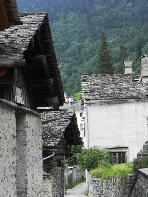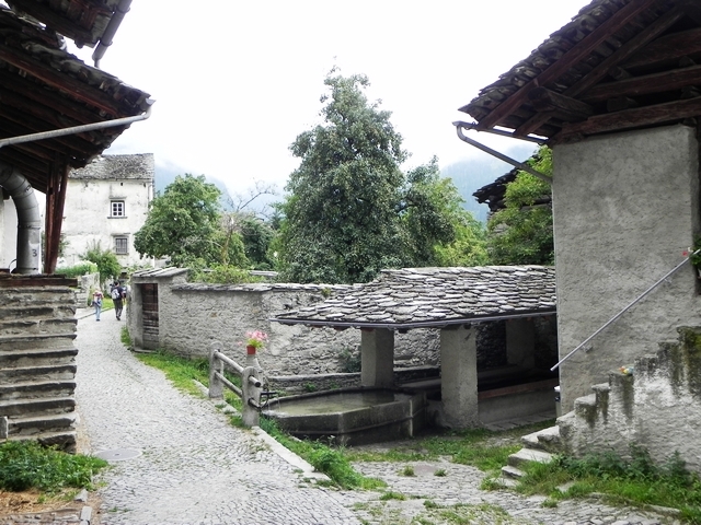 Пятиминутный сверхнапряжённый подъём по серпантину, проходящему через каштановый лес – и мы у цели. Прямо на въезде в деревню находится небольшой гостевой паркинг, но он забит до отказа – приходится проявлять изобретательность, чтобы как-то примоститься. Совсем недавно прошёл обильный дождь, поэтому здесь сыро, но при этом не холодно. Я обожаю такую погоду, когда тело обволакивается тёплой комфортной влагой. В такие минуты ты ощущаешь неразрывную связь с окружающим миром – это идеальное состояние для знакомства с такими местами как Сольо. Ранее я даже мысли не допускал, что в Швейцарии могут существовать такие деревни. Складывается ощущение, что время здесь навсегда остановилось. В Сольо повсюду в качестве строительного материала используется грубый камень – уличные мостовые, лестничные ступени, стены домов, кровельная черепица.