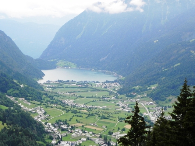 Ещё несколько зигзагов серпантина и нашим глазам предстаёт картина на раскинувшийся в залитой солнцем долине безмятежный италоязычный городок Поскьяво.