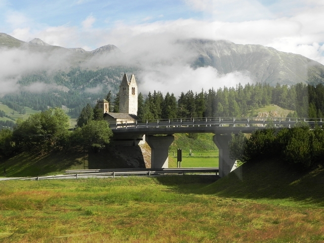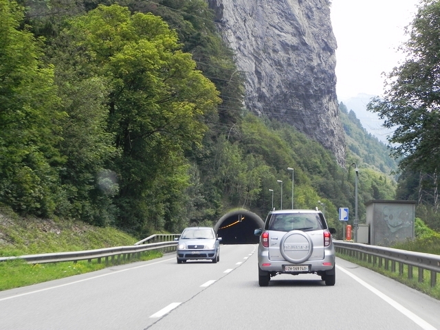 Смысл этой таблички понять было несложно: на участке между городками Lavin и Klosters проложен железнодорожный туннель Vereina, по которому осуществляется перевозка автомобилей и их пассажиров. Актуальность такой услуги резко возрастает зимой, когда перевал заваливает снегом. Но и летом, если нужно сэкономить время и нет желания петлять по серпантинам, можно проехать на автопоезде, который отправляется каждые полчаса. В моей карте, которая была издана в 1998 году, информация об этом туннеле отсутствовала. Этот факт подтолкнул меня к тому, чтобы изучить «вопрос». Оказалось, что туннель Верайна был введен в строй в конце 1999 года, его длина составляет 19(!) километров, поэтому он является самым протяжённым туннелем в мире для железных дорог с метровой колеёй. Поезд преодолевает этот участок в среднем за 19 минут. Если я когда-либо вновь окажусь в этих местах, то обязательно проеду на этом поезде.