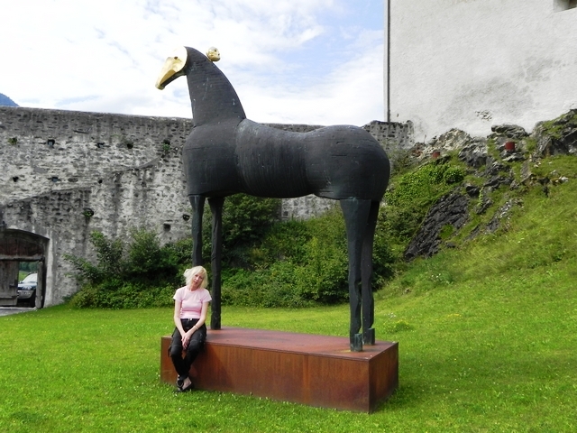 В этом дворе стоит скульптура лошади с позолоченной головой. Взгляд скакуна направлен в сторону Граубюндена, словно подсказывая нам, что пора отправляться в дальнейший путь.