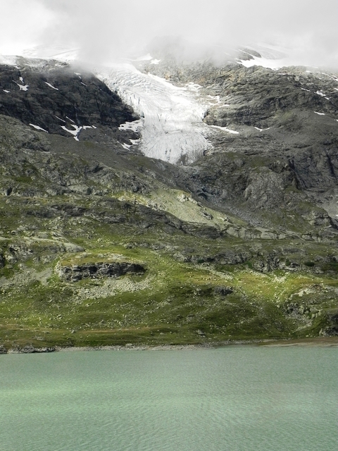 3500-метровый ледник Палю, тянущийся от одноимённого пика, едва не касается поверхности Белого озера (Lago Bianco).