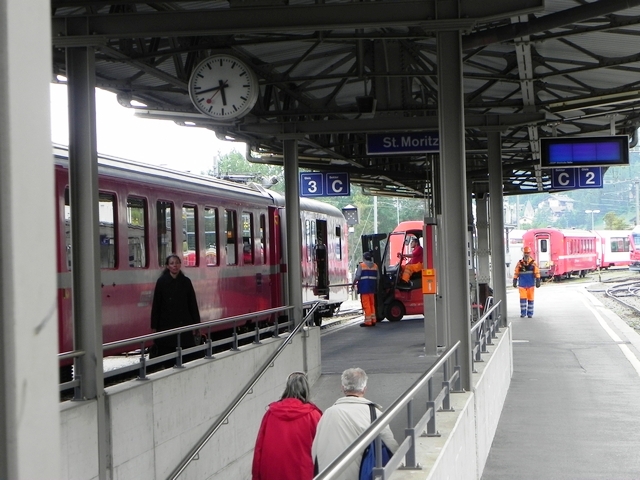 В 16.08 мы вернулись в Санкт-Мориц. Погода снова начала портиться, поэтому торопимся расстаться с городом, тем более, что наш путь снова лежит на юг.