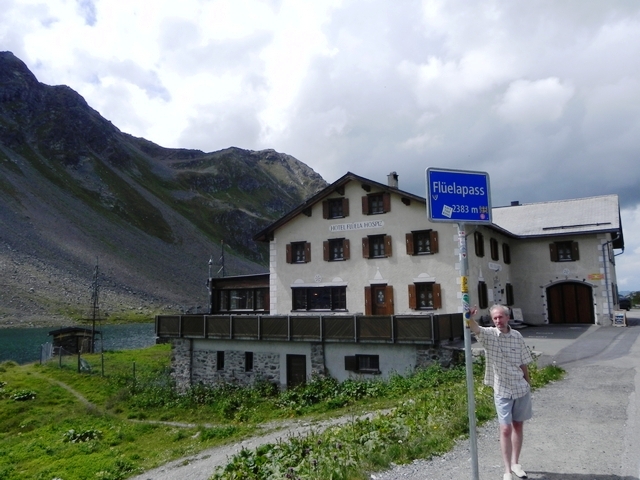 Проезжаем ещё 200 метров и делаем остановку для обязательной фотосессии у реперной отметки. Перевал Флюэла входит в пятёрку самых высоких перевалов Швейцарии.