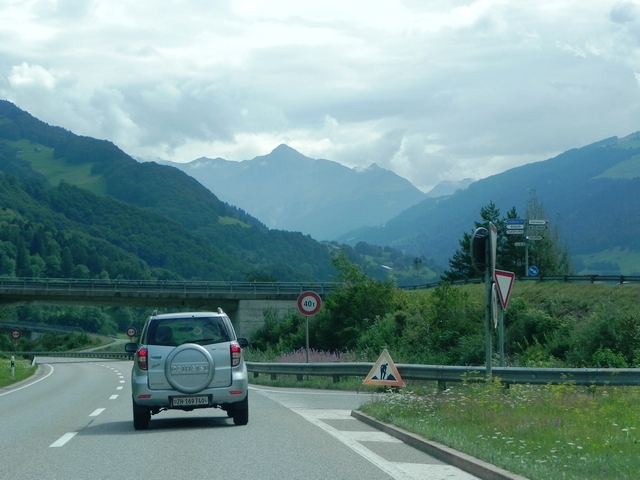 Сегодня нам предстоял бросок в кантон Граубюнден, находящийся в самом сердце швейцарских Альп. Путь не длинный, но весьма извилистый, с неигрушечными перевалами. Но сначала мы намеревались заскочить в деревню Бальцерс (Balzers). Её я заприметил ещё в прошлую поездку: уж больно соблазнительно на фоне гор выглядит расположенный там замок Гутенберг.