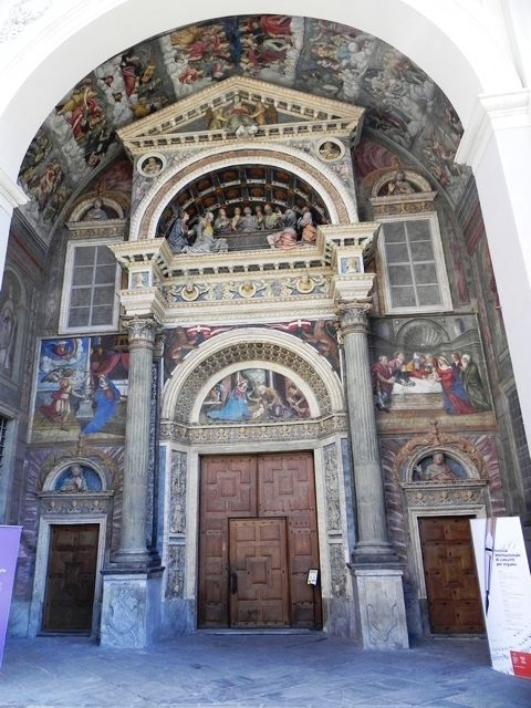 Дело в том, что в глубине входного портала скрывается более древний фасад, являющийся шедевром эпохи Возрождения. Он представляет собой невероятное сочетание фресок, терракотовых фигур и разнообразных декоративных стилей той великой эпохи. Естественно, что основой сюжетов являются библейские сцены.