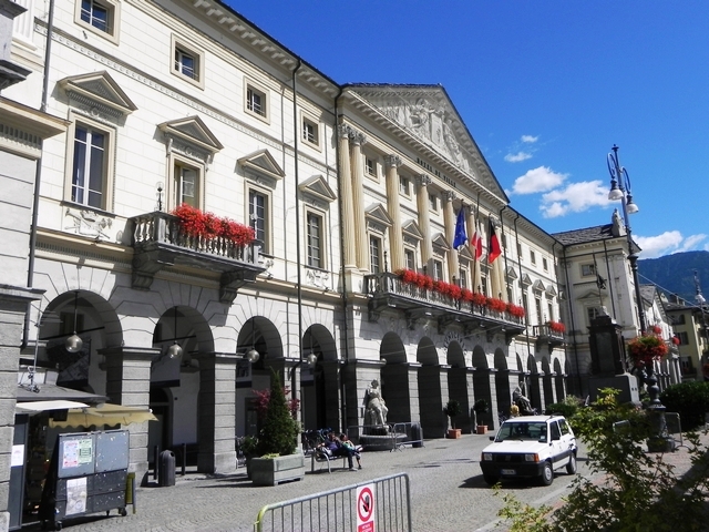 Аоста, прежде всего, знаменита памятниками древнеримской эпохи. Но сначала мы отправились взглянуть на местную ратушу. Для столь небольшого города здание показалось мне чересчур помпезным и амбициозным – чувствуется французское влияние.