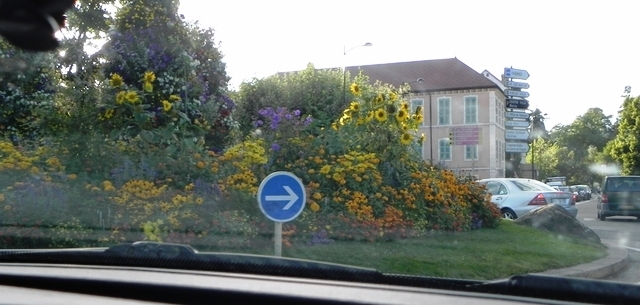 Бытующее мнение о том, что передвижение по региональным дорогам Европы чуть ли не в два раза увеличивает время поездки, во Франции не имеет под собой никаких оснований. Здесь мы практически постоянно ездили с максимально возможной допустимой скоростью, а частенько и быстрее. Трафик повсеместно был невысокий, и в населённых пунктах заторов не возникало. Главное преимущество перемещения по второстепенным дорогам – это возможность беспрепятственно обозревать окрестности. Таким образом, у меня сформировался некоторый перечень признаков, по которым можно безошибочно идентифицировать французскую глубинку. Прежде всего, это цветочные клумбы. Они, конечно, есть везде. Но, в отличие от немецкой или швейцарской строгости и даже чопорности, французы не придерживаются какого-то определённого стиля – налицо безудержный полёт фантазии.