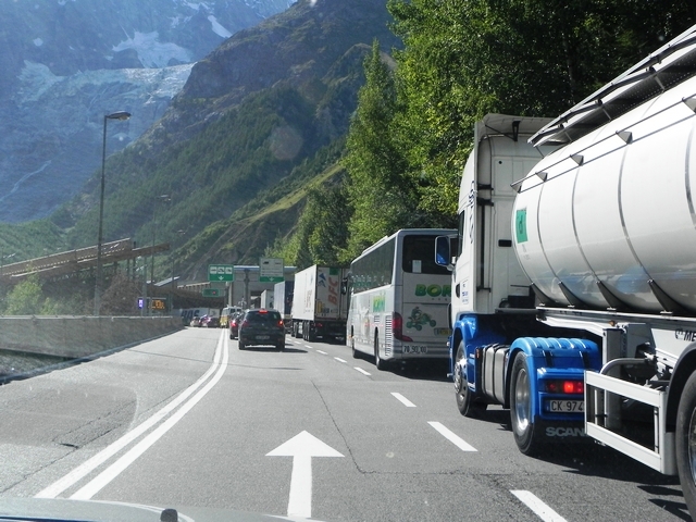 Монбланский туннель оказался «дружелюбным» и хорошо освещённым, ехать по нему было легко и не страшно. Я даже с некоторым опозданием заметил, что приблизился к впередиидущей машине слишком близко. Пришлось сбавить обороты.