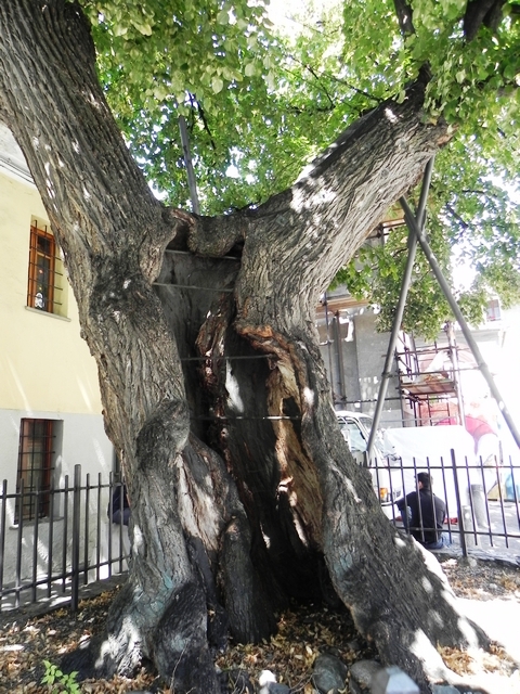 Возраст этого дерева составляет почти пять веков, а диаметр ствола – полтора метра.