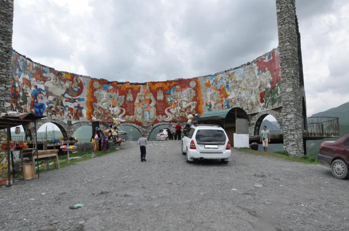 К 10 утра вся площадка перед монастырем была забита Деликами и местными пареньками с лошадками для конных экскурсий. Народу-уйма. Большинство- грузинская молодежь (школьники с экскурсиями). Грузинская молодежь любит и знает свою историю! 40-ка минут хватило на обзор и мы спустились на завтрак в Степанцминду. Затем выдвинулись по Военно Грузинской Дороге на Мцхету, где у нас была бронь гестхауса через booking.com.