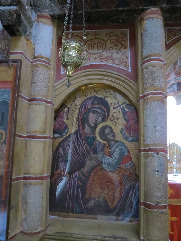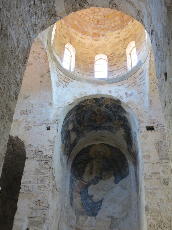 Турки, превращая церковь в мечеть, забелили все изображения. Недавно слой известки сняли, обнаружив великолепно сохранившиеся изображения Пантократора и Рождества Богородицы.