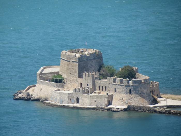 И еще одна яркая достопримечательность Нафплиона – форт Бурдзи, построенный все теми же венецианцами в XV веке для защиты гавани. Расположилась эта крепость на маленьком островке в Арголидском заливе, напротив самого Нафплиона. За его стенами располагался небольшой гарнизон, а вход в порт перекрывался огромной цепью. Форт также был захвачен турками, а после обретения Грецией независимости и до 30х гг. XX века служил домом городского палача.