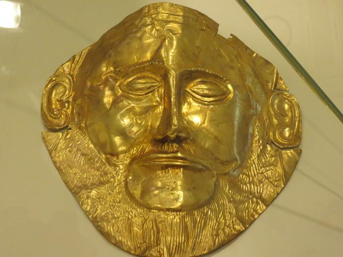 Основываясь на мистических легендах и трактуя их буквально, немецкий археолог Генрих Шлиман отправился в 1876 г. искать дворец и гробницу Агамемнона. Поиски его оказались успешными, ему удалось раскопать ценные и богатые исторической информацией сокровища древних Микен. Во время раскопок в усыпальницах было найдено большое количество золотых и серебряных предметов. Самый знаменитый из них — так называемая маска Агамемнона, которую Шлиман считал погребальной маской знаменитого царя. Хотя специалисты утверждают, что на самом деле загадочная маска и другие находки почти на триста лет старше Агамемнона. Не берусь судить, чье мнение правильное, но в музее на экспонаты поглядели с большим интересом. Правда, оригинальная маска хранится в Национальном музее в Афинах, в местном музее — копия.