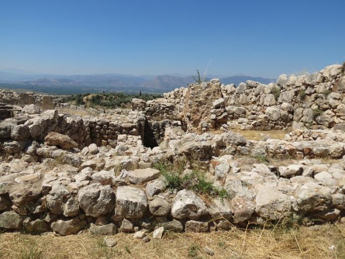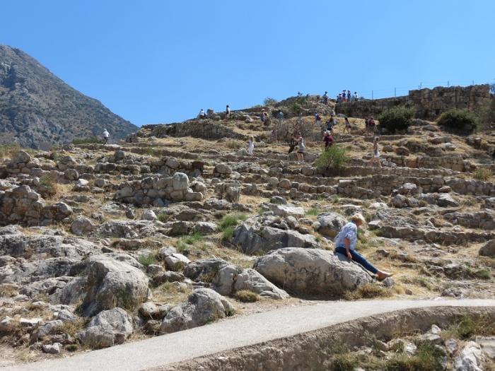 Вообще, археологические раскопки Микен представляют собой живописные развалины-развалины. Неспециалисту достаточно непросто понять, где бывший дворец, а где гробницы, только информационные стенды способствует этому. По территории пролегает дорога шириной около 3 метров, которая ведет от Львиных ворот к валу, поддерживаемому многоступенчатой стеной.
