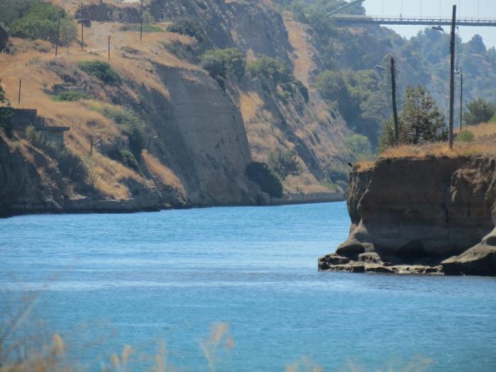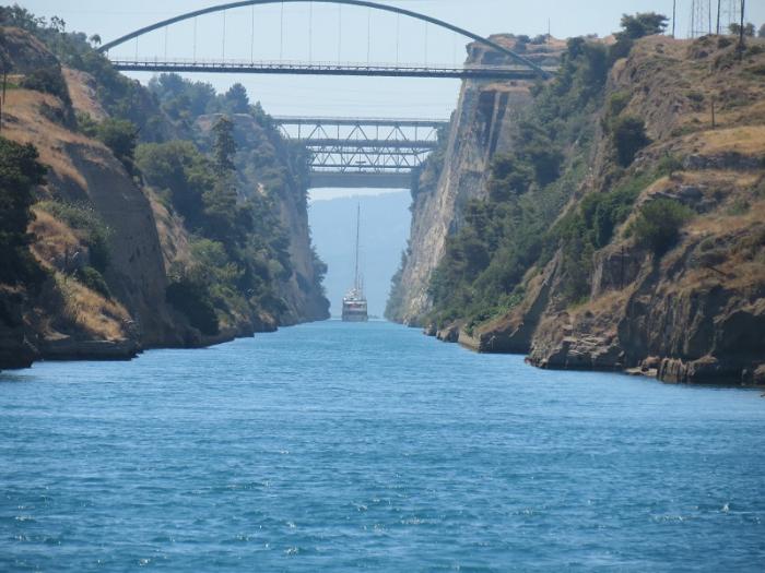 Много читала о Коринфском канале – о том, как с древних времён делались попытки прорыть его через Коринфский перешеек, соединив тем самым Саронический залив Эгейского и Коринский залив Ионического морей. Первое упоминание относится к VII веку до н. э., когда коринфский тиран Периандр, причисляемый к семи мудрецам древней Греции, попытался прорыть водный путь, но остановил работы. Причиной прекращения работ являлись опасения Периандра, что из-за несоответствия уровней Эгейского и Ионического морей возможно затопление земель. По другой версии, он боялся возбудить гнев богов, потому что оракул жрицы Пифии провозгласил: «Не снабжай перешейка башней, и не прорывай его (не пересекай его каналом)». По предположениям, это прорицание исходило от жрецов коринфских храмов, боявшихся, что вследствие открытия канала для быстрого прохода судов они лишатся щедрых приношений и подарков, потому что у купцов не было бы больше поводов оставаться в Коринфе. Вместо канала тиран создал более простой и менее дорогостоящий каменный волок, получивший название Диолк. Остатки Диолка в настоящее время существуют рядом с каналом. Гай Юлий Цезарь, Калигула, римский император Нерон также пытались прорыть канал, но не добились успеха.