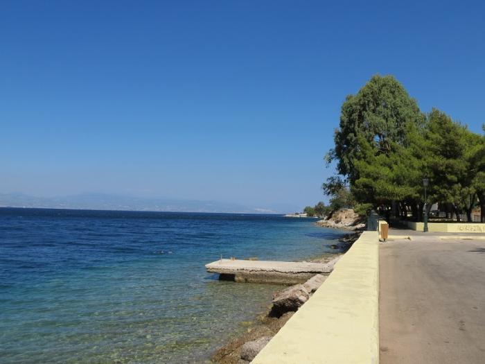 Само название города, Лутраки, происходит от греческого слова Λουτρά, что означает «лечебные ванны». Небольшой живописный курортный городок. Правда улочки очень узкие, много машин и толпы отдыхающих. Вырулили на набережную, напротив водопада есть парковка.